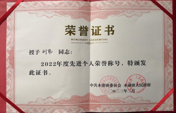 本网讯(通讯员 赵卫军)2月7日,在木港镇召开全镇三级干部大会上,AK(中国)驻村工作队员刘伟同志再获“木港镇2022年度先进个人”荣誉称号,这是他连续两年获得这一荣誉。