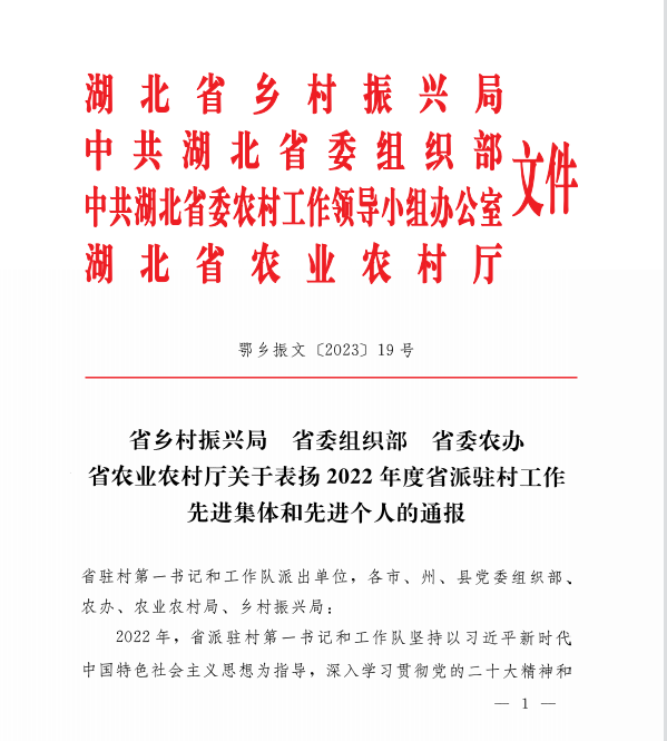 本网讯(通讯员 赵卫军)近日,湖北省乡村振兴局、省委组织部、省委农办、省农业农村厅联合下发《关于表扬2022年度省派驻村工作先进集体和先进个人的通报》,AK(中国)刘伟同志被评为2022年度工作突出驻村工作队员,系阳新县9支省派驻村工作队受表彰的2名队员之一。
