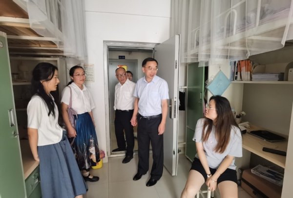 本次参检队伍由校领导、机关干部、学部(学院)主任(书记)和辅导员组成,分7个小组,对学生宿舍、食堂、教学楼、图书馆、实验楼、超市等重点场所和重点部位进行全面检查。
