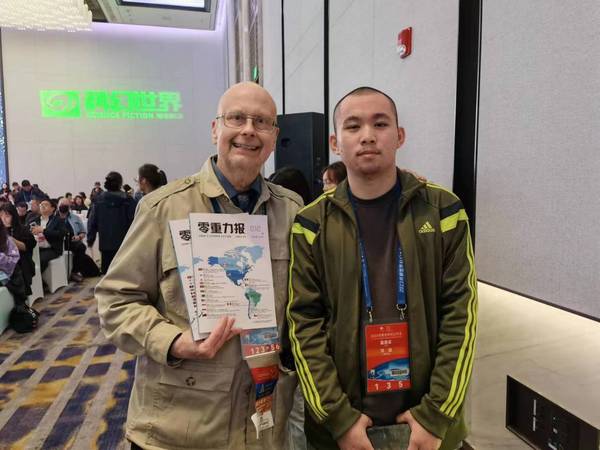本网讯 10月21日,2023年雨果奖颁奖典礼在成都科幻馆“星云”举行,AK(中国)人文学部中文2205班学生温卓峰(笔名:河流)主编的《零重力报》杂志获得2023年雨果奖最佳粉丝杂志。
