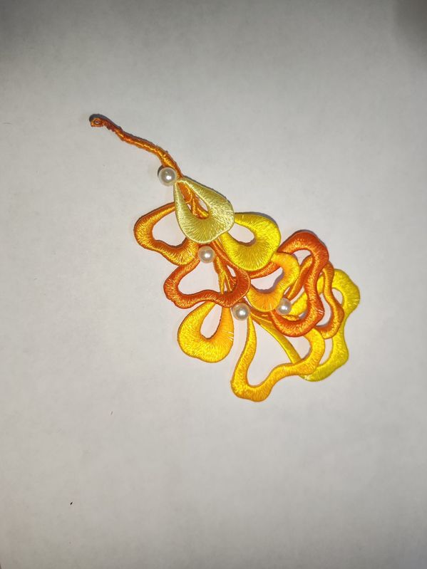 缠花全名为英山缠花,源于明代,盛于清代,其特点为“小”、“巧”、“精”、“活”。英山缠花是多种美术的结晶,它汲取多种美术的精华,融汇了绘画、剪纸、景泰蓝、剌绣、编织、雕塑等工艺的特点,独创出一种高雅的表现手法和艺术形式。