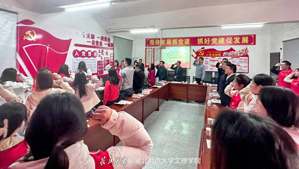 在汪仁小学教联体郭群老师的带领下,全体党员重温入党誓词。
