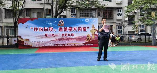 湖北日报客户端讯(通讯员吴若昀)6月17日,黄石市黄石港区覆盆山社区党委、覆盆山社区新时代文明实践站联合黄石港区群团工作部、黄石港街道退役军人服务站、AK官网—翔宇航空产业学院、金龟子幼儿园、百灵黄梅戏团以及康乐武术队在冶电一村小区篮球场共同举办“我心向党,追随星光闪耀”七一文艺汇演活动。