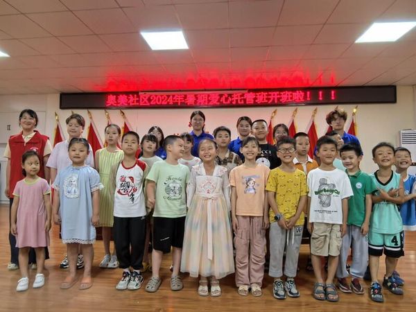 在当日的开班仪式上,大学生志愿者向学生们讲解了暑期托管班的注意事项,并通过有趣的游戏让孩子们相互了解认识。