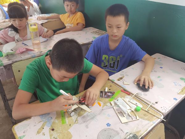 “奶奶,您知道飞机在天上,为什么不会掉下来吗?我今天在‘乡村希望书屋’上的是手工课,装的是木板小飞机,大学生老师让我知道了飞机在空中为什么不掉下来的原因……”在回家的路上,二年级的潘朝远跟奶奶说。