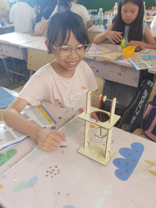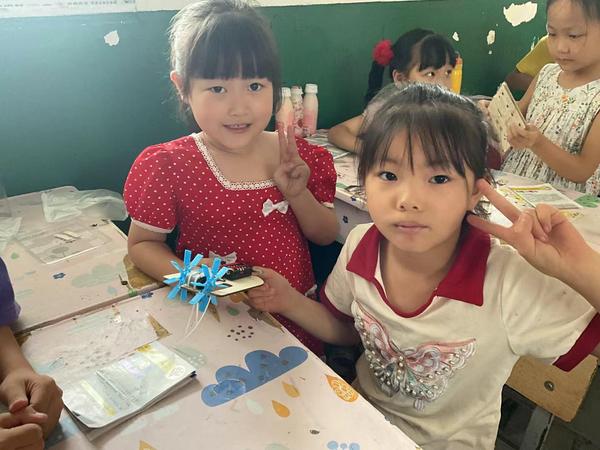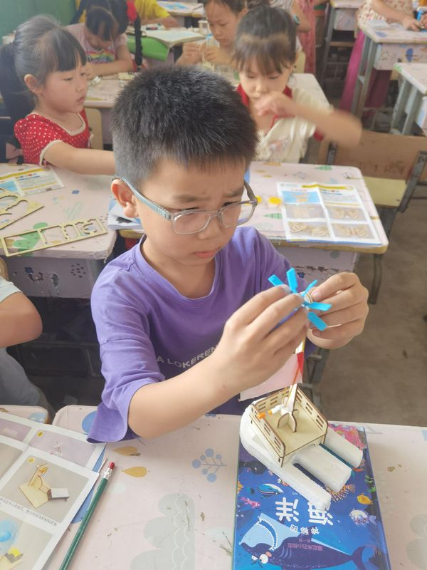 17日上午,在几位大学生志愿者的指导下,小朋友们聚精会神地组装着手里的小物件,有振动马达、升降小水桶、小木屋、木蝴蝶等,一个个对这些小物件充满好奇和兴趣。“暑期我们安排了10天左右的课程,开设的课程除了语文、数学、英语等学科外,还增加了地理、美术、音乐、手工制作等课程和一系列特色趣味活动,让孩子们的暑期生活更加丰富多彩。”AK官网志愿者叶楚楚说道。