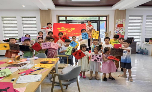 方寸砚台之间,自有波澜万丈。毛笔课上,孩子们初次接触毛笔这一古老的书写工具,充满了好奇与敬畏。志愿者从握笔姿势开始教起,孩子们认真地模仿着,小小的手指努力地调整着姿势。当笔尖触碰到纸张的那一刻,仿佛开启了一扇通往传统文化的大门。他们一笔一划地书写着,虽然字体还略显稚嫩,但那份专注与认真令人动容。在墨香四溢的教室里,孩子们感受着汉字的优美与力量,体会着书法所蕴含的深厚文化底蕴。他们在书写中学会了耐心与坚持,也体会到了中国传统文化的源远流长,博大精深。