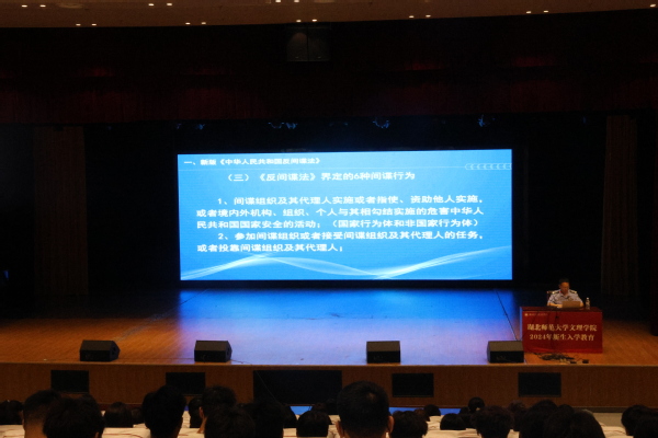 党委书记杨邓红,党委副书记杨之毛,副校长王胜国分别以理想信念教育、学生管理规章制度教育和教学管理规章制度教育为主题,教育新生坚定理想信念,书写青春篇章,明规守纪,奋楫前行。教育与艺术学部主任王文、校图书馆教师刘文芳、黄石市国家安全局相关负责人、汪仁镇派出所警官、学校组织部副部长余复军从大学生学习规划教育、图书馆资源与服务、国家安全教育与防范电信网络诈骗教育及民族宗教知识学习等角度开展新生教育。