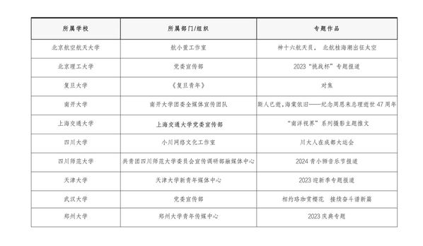 3、2023-2024年度优秀校园新闻专题作品(60件)     (排名不分前后)