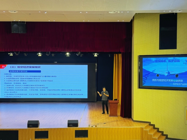 周宇作低空经济行业分享。他表示,随着中国低空经济空域管理改革的逐步深化,产业与科技的日益革新,低空经济概念逐步演进,越来越受到产业界、投资界和学术界的关注。他讲解了什么叫做低空经济,并进一步从国家法规层面、政策层面和基础设施层面分析了目前中国低空经济的发展状况和条件。关于低空经济的前沿赛道,他重点讲解了eVTOL(电动垂直起降飞行器)和民用无人机,展示了当前民用无人机的多个应用场景,并分享了无人机公司岗位列表,供学生作为学习和就业参考。在提问环节,他建议毕业想从事无人机行业相关工作的同学,从无人机如何组装、调试、飞行、维修四个方面做好相应学习,确保自己有相关经验和能力,努力实践。周宇深入浅出的启蒙课,打开了一个新世界,让同学们认识到科技进步和时代发展是大势所趋。
