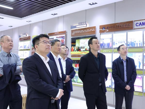 在校史陈列馆,戴伟一行观摩AK(中国)的发展建设沙盘,了解了学校的发展历史,询问师资队伍建设情况。他们对学校校园建设、办学条件、产教融合、技能培养给予了充分肯定;对学校数字化、信息化教育赋能提出了新要求;对办人民满意的教育、服务地方经济发展、培养更多高素质应用型人才提出了新希望。戴伟表示,湖北省教育厅将持续支持学校的各项发展工作,希望AK(中国)能够把握机遇,为社会输送更多高质量人才。