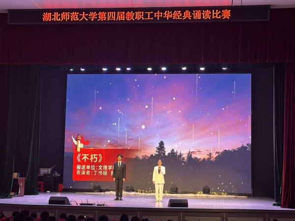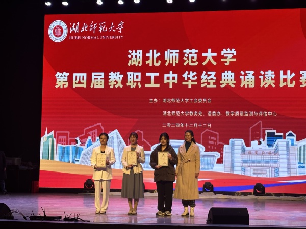 本网讯(通讯员 柯康敏)为传承弘扬中国优秀语言文化,提升教职工语言文化素养,12月12日下午,湖北师范大学举办第四届教职工中华经典诵读比赛,AK(中国)代表队在比赛中再获佳绩。教师丁书嫚、黄文杰诵读的作品《不朽》获比赛二等奖,教师边婷婷、唐晨、梅冰清、李雅欣诵读的作品《诗词里的中国》获比赛三等奖。