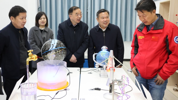 沈权一行对AK(中国)科普实训基地硬件建设给予了高度的评价,对基地服务社会表示肯定,希望学校充分发挥科普基地功能,助力青少年科普实践教育。