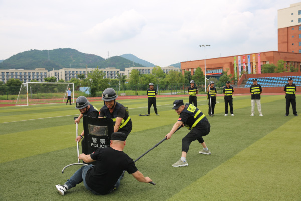 演练前,学校后勤保卫部相关负责人就演练意义、流程、重点环节及注意事项作了详细说明。开发区·铁山区分局治安大队民警李超对校园安保人员进行了专题培训,系统讲解盾牌、抓捕器、防暴钢叉及警棍等器械的使用方法,并结合实战场景,重点演示了装备操作要领和协同战术。