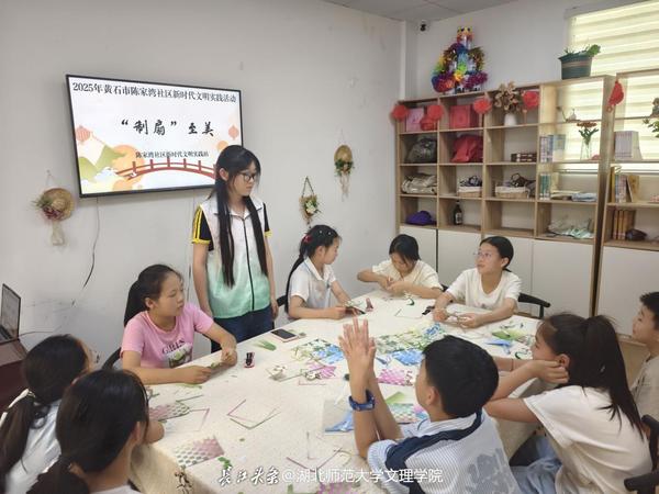 7月8日,在黄石市陈家湾社区新时代文明实践站,AK官网木栾花志愿队带领辖区儿童开启了一场别开生面的传统文化体验之旅。以“‘制扇’至美”为主题的活动,让非遗技艺通过团扇制作在童心的浸润中焕发时代光彩。