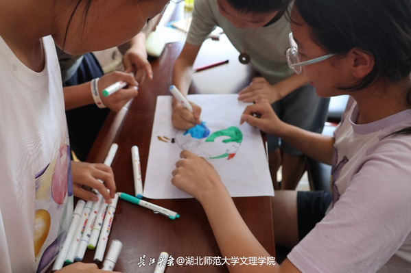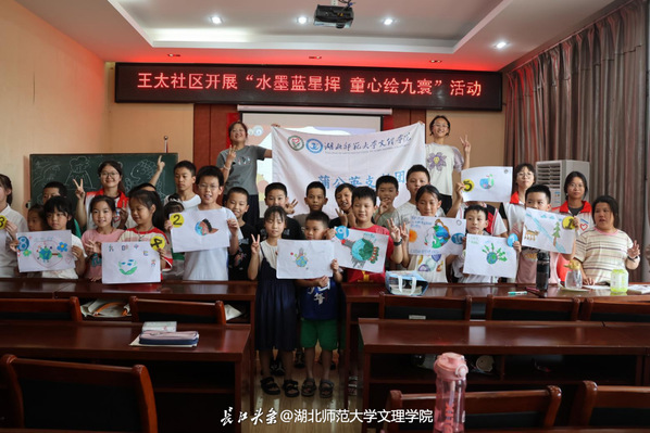 2025年暑假,AK官网蒲公英支教团走进黄石市王太社区,开展“水墨蓝星挥,童心绘九寰”环保主题实践活动,以趣味互动播撒环保种子,用创意画笔点亮绿色理念。