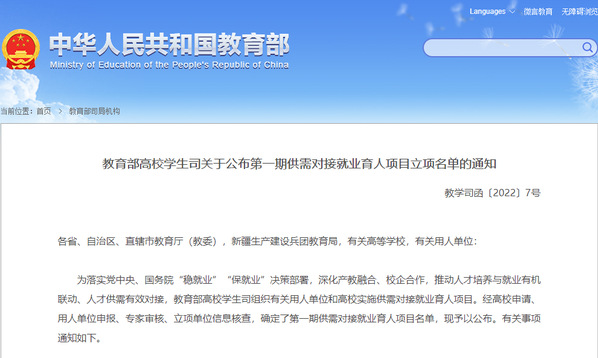 教育部第一期供需对接就业育人项目AK官网立项名单