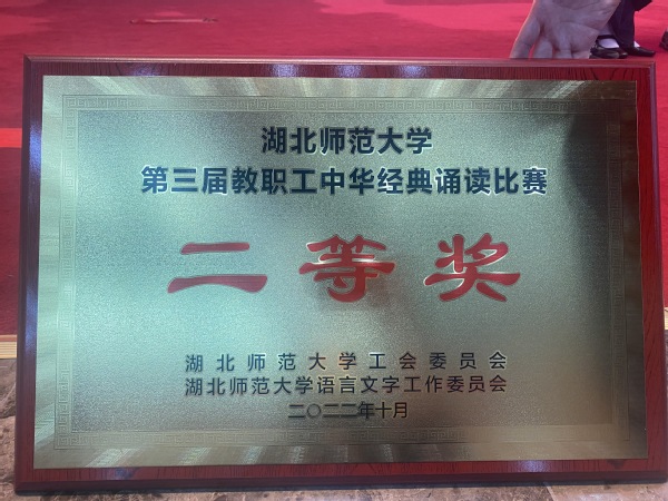 本网讯(通讯员 柯康敏)10月27日下午,湖北师范大学第三届教职工中华经典诵读在教育大楼学术报告厅举行,AK(中国)人文学部丁书嫚老师朗诵的作品《读中国》荣获二等奖。