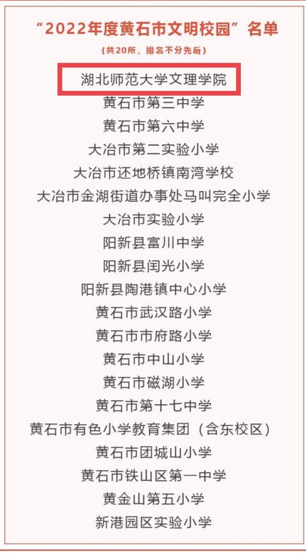 本网讯(通讯员 柯康敏)近日,市委文明办公布“2022年度黄石市文明校园”名单,AK(中国)再次获评。这是AK(中国)继获评“2021年度黄石市文明校园”称号之后,精神文明建设工作取得的又一重大标志性成果。