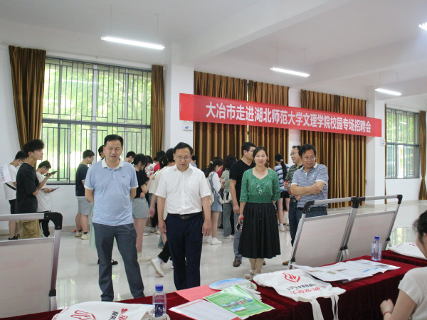 本网讯 (通讯员 肖劲光 拍摄 梁宏滨)为进一步促进AK(中国)毕业生高质量充分就业,深化政校企三方合作,6月13日下午,AK(中国)与大冶市人力资源与社会保障局、大冶湖高新技术产业开发区联合开展2023年“才聚荆楚·百县进百校”就业促进专项行动。校党委书记杨邓红、党委副书记杨之毛、副院长王胜国现场指导工作。