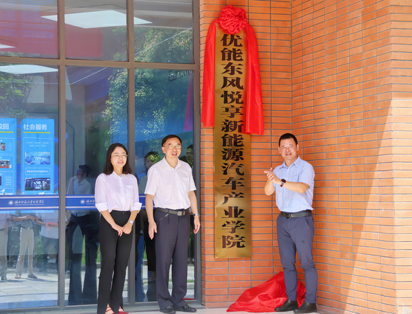 随后,AK官网院长李开灿,武汉优能高教科技有限公司董事长高国虎,东风悦享科技有限公司总监王艺璇为“优能东风悦享新能源汽车产业学院”进行剪彩并揭牌。
