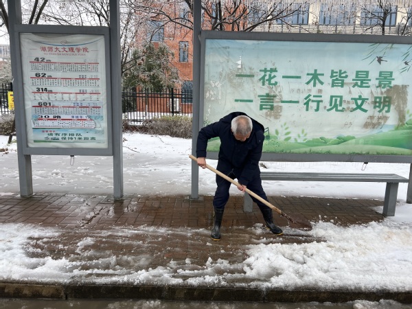 在除雪现场,他们手拿铁锹,对主要道路、人行道进行集中清理,大家热情高涨,各种清雪声音混在一起,忙碌的身影在皑皑白雪中形成一道亮丽的风景线。