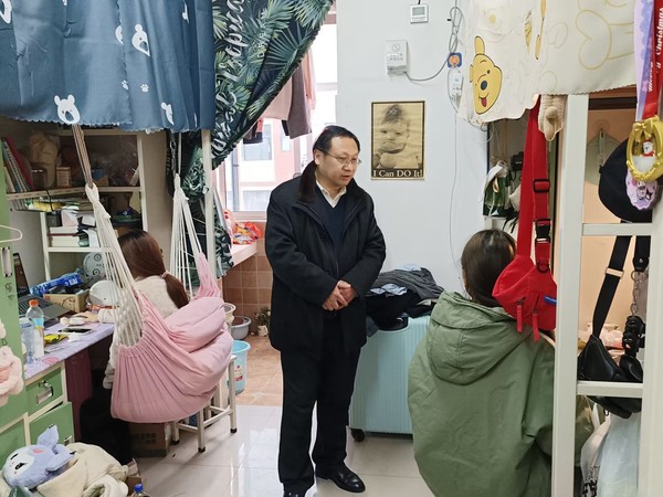 各检查组通过实走访、严问询,全面排查整治各类安全风险隐患。检查范围涵盖学生宿舍、食堂、教学楼、图书馆、实验室、超市、学术交流中心等安全重点区域。对涉及师生人身和财产安全方面的消防疏散通道、消防设施器材、应急照明、食品卫生及宿舍用电安全等进行了仔细检查,确保不留盲区、不留死角。在检查过程中也开展“三夜两节”的安全教育,叮嘱广大师生注意个人安全,在离校时要关好门窗,切断电源,确保人身财产安全和假期校园安全。