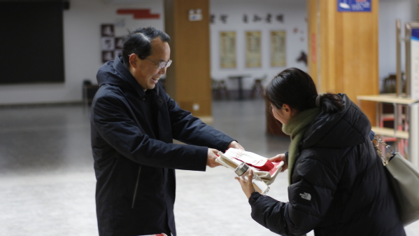 “入馆有礼”,上午8点,学子们便在图书馆门口排队等候入馆,借阅图书、查阅资料、复习备考。张志华、王胜国为入馆的前三十名读者赠送了图书馆定制礼品一份,并对同学们表达了新学期的祝福,并希望AK(中国)广大师生可以常走进图书馆,与圣贤为伍、与经典为伴、与智慧同行。