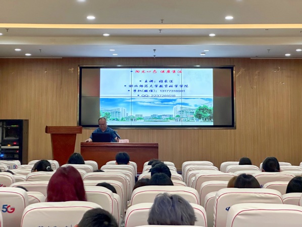 本网讯(图 李钊杨 侯佳妤 文 张慧萍)4月23日上午,由校党委宣传部和图书馆联合举办的“湖山讲坛”系列讲座第六讲——《阳光心态,健康生活》在图书馆报告厅开讲。此次讲座的主讲人是湖北师范大学程良道教授,百余名文理学子现场聆听。