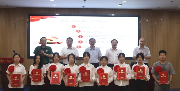 随着庄严的国歌响起,表彰大会正式开始。“我志愿加入中国共产党……”全体党员举起右拳,跟随优秀党员代表柯康敏同志一同重温入党誓词。