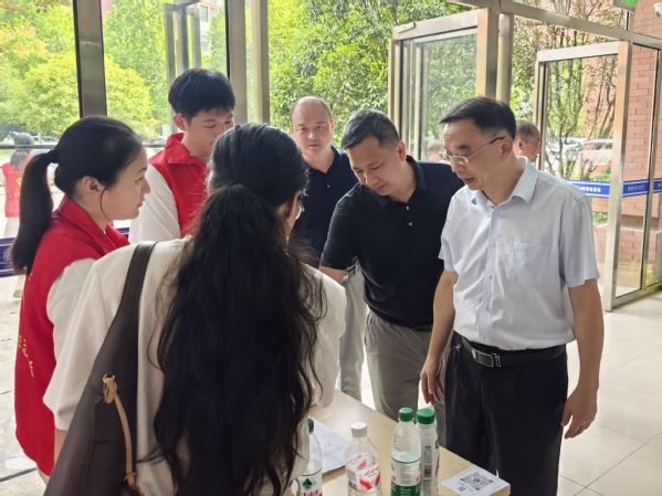 报到期间,校长李开灿带领学校党政领导班子深入各学院迎新点和新生宿舍,亲切看望新生与家长,慰问一线迎新的师生员工。校领导仔细检查宿舍设施,关切询问新生对住宿环境的意见建议,与新生们亲切交流,了解他们的生源地和适应情况。李开灿校长强调,要始终坚持以学生为本,不疏漏任何一个细节,做到热情周到、服务细致,让每一位新生都能感受到校园大家庭的温暖。来自山东的学生家长王女士感动地说:“校领导这么关心学生,服务这么周到,我们把孩子送到这里读书,特别放心。”