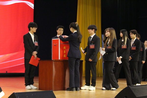 梅益明代表上级团组织向大会的召开表示热烈祝贺,并对近年来学校共青团及学生会工作取得的成绩给予肯定。他寄语全校青年学子要锚定强国目标,筑牢信仰根基,以青春之我扛起时代重任;勉励学生会持续深化改革,深耕服务同学的主责主业,凝聚青年奋进合力;号召大家将个人理想积极融入民族复兴伟业与校地发展大局,在强国建设、民族复兴的伟大征程中贡献青春力量。