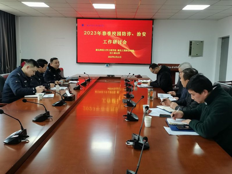 本网讯(通讯员涂亦乐)为了有效遏制春季开学电信网络诈骗的高发态势,提升预防电信网络诈骗的针对性和时效性,同时做好春季校园治安防范工作。2月21日下午,学校学工部、后勤保卫部联合汪仁派出所及湖北工程职业学院相关部门共同召开2023年春季校园“防诈、治安”工作研讨会,就如何预防电信网络诈骗和校园治安管理展开讨论。张志华副院长、汪仁派出所副所长李福奎、驻校民警刘天森、湖北工程职院学工部部长吴量、保卫处处长章泉及AK(中国)学工部和后勤保卫部相关负责人参加了会议。