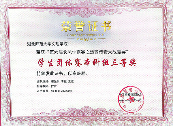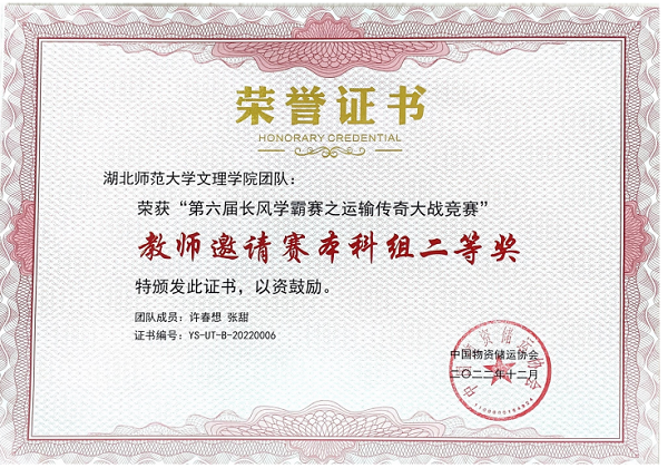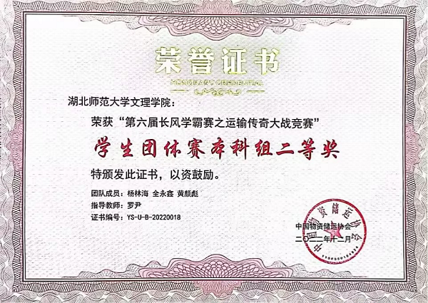 由中国物资储运协会主办,北京络捷斯特科技发展股份有限公司、全国交通运输产教融合服务平台承办的第六届“长风学霸赛之运输传奇大战”全国总决赛于2022年12月15日落下帷幕。物流管理专业张甜、许春想两位老师经过模拟实训和竞赛操作两个环节的比拼,荣获教师邀请赛二等奖;物流管理专业2002班学生杨林海、全永鑫、黄颜彪在学生团体总决赛中荣获本科组组二等奖,谢显根、李程、王城荣获本科组组三等奖,罗尹老师荣获最佳指导教师奖。