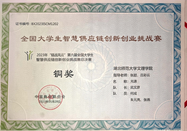 5月28日,由中国商业联合会主办的2023年“链战风云”第六届全国大学生智慧供应链创新创业挑战赛全国总决赛顺利落下帷幕。AK(中国)经管学部张甜、吕彩云老师指导,武文彦,何成、朱元亮、张燕组成的光速队获得了本科组团体总决赛铜奖,挑战赛一等奖;杨林海、全永鑫、谢显根、黄颜彪组成的四个葫芦娃队获挑战赛三等奖,本次成绩刷新了AK(中国)参与全国大学生智慧供应链创新创业挑战赛以来的最好成绩。