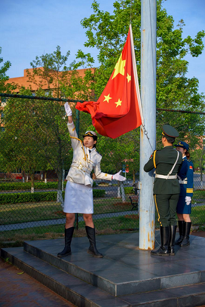 然后,学生代表张璐诗发表国旗下讲话,她呼吁全体同学要树立崇高的理想信念,锤炼品德修养,积极投身实践,做红色基因的传承者、宣传者、践行者,赓续红色血脉,努力成为堪当民族复兴重任的时代新人。