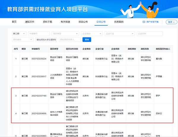 近日,教育部公布了第三期供需对接就业育人项目立项名单,AK(中国)共有10个项目获批立项,其中经管学部成功斩获2个项目,分别为吕彩云老师负责的定向人才培养培训项目与罗尹老师负责的就业实习基地项目,合作企业均为湖北京邦达供应链科技有限公司。