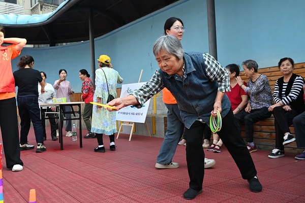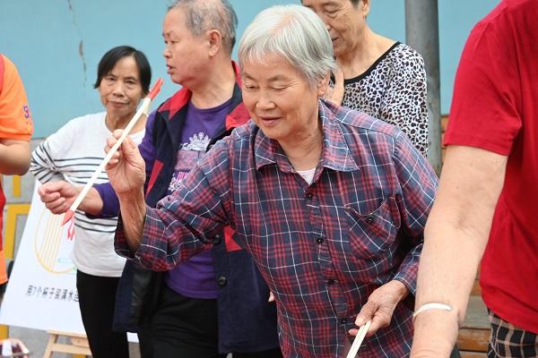 此次活动以“青春伴夕阳”趣味运动会的形式进行,大学生志愿者们带领老人们一起进行了投壶、套圈、吹乒乓球等趣味游戏。充满乐趣的互动活动,让老人们身心愉悦,乐在其中,活动现场处处洋溢着欢声笑语。