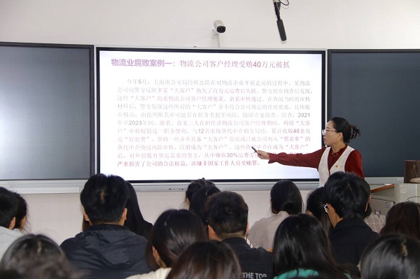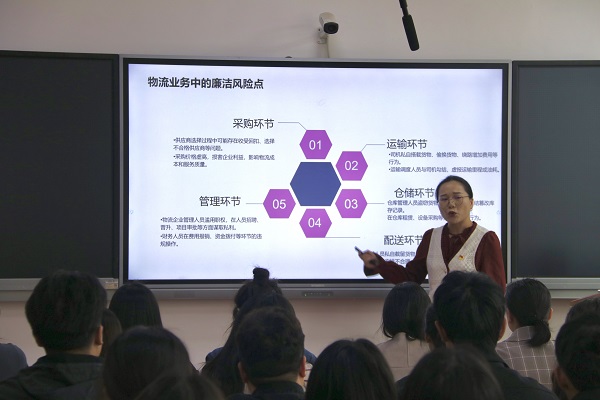 罗尹老师首先介绍了物流业务中的廉洁风险点,主要集中在采购环节、运输环节、仓储环节、配送环节、管理环节五个方面。紧接着,罗老师认真剖析了各岗位廉洁风险特点,提出规避风险点的具体措施。随后,她结合“上海市某物流公司客户经理受贿40万元被抓”和“德邦快递绥化安达市北岸逸城营业部员工盗窃公司承运货物”两个反面案例,深入分析案例中“干部职工以权谋私”与“内部人员监守自盗”涉案人员的违法行为。最后,罗老师指出物流行业作为经济发展的重要支柱,其运作的高效性和公正性至关重要。如何在物流行业中践行廉洁操守,确保行业的健康发展,是我们每个物流人都要思考的问题。