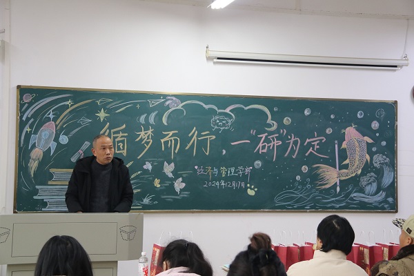 徐燕主任代表学部向考研学子们表达了亲切关怀,并提出了四点希望与要求:其一,坚定信念,持之以恒。考研征程充满挑战,学子们需保持昂扬斗志,锚定目标,以坚韧不拔之毅力奋勇前行;其二,科学备考,张弛有度。冲刺阶段应合理规划时间,优化复习策略,注重劳逸结合,确保身心健康,以良好状态迎接考试;其三,诚信应试,风清气正。秉持学术诚信,遵守考场纪律,展现优良学风与考风;其四,强化保障,贴心服务。学部将继续加强考研指导与支持,全力做好后勤保障服务,为学子们排忧解难,保驾护航。