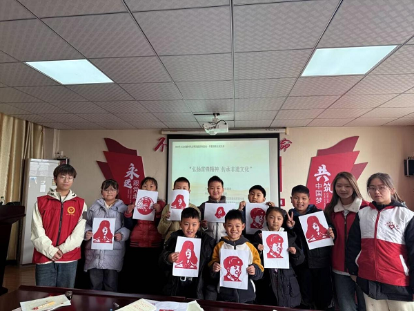 志愿者们将雷锋形象与传统剪纸艺术巧妙融合,设计出一系列以“雷锋头像”为主题的剪纸模板。通过志愿者的细心指导,孩子们完成了一幅幅精美的剪纸作品。栩栩如生的雷锋剪纸不仅展现了传统技艺的魅力,更让雷锋精神在艺术创作中得到生动诠释。