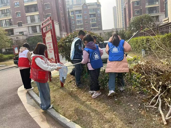 随后,在志愿者的带领下,孩子们化身"小小雷锋",开展社区环境清洁行动。志愿者们分组指导儿童们清理公共区域垃圾,分类投放可回收物,并讲解垃圾分类知识,培养他们的环保意识和社会责任感。