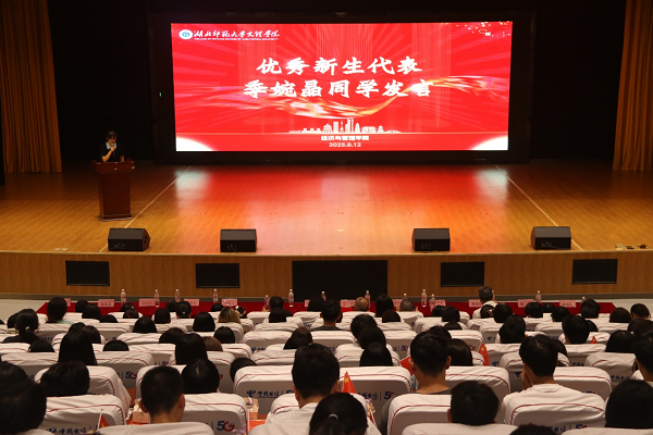 财务管理2501班季婉晶作为新生代表发言,她表达了对大学生活的憧憬与期待,并代表全体新生承诺将以饱满的热情投入学习,不负学院期望,努力成为优秀的经管学子。
