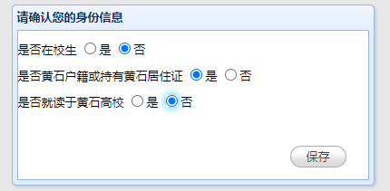 首先输入自己的身份信息,如实选择自己的身份信息情况,点击保存进行资料的提交,身份信息一经选定不可更改,其属于如下身份中的其中一种。