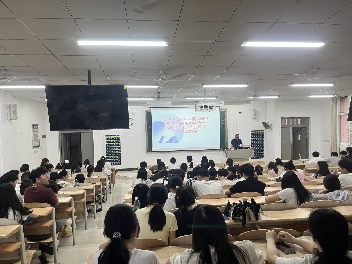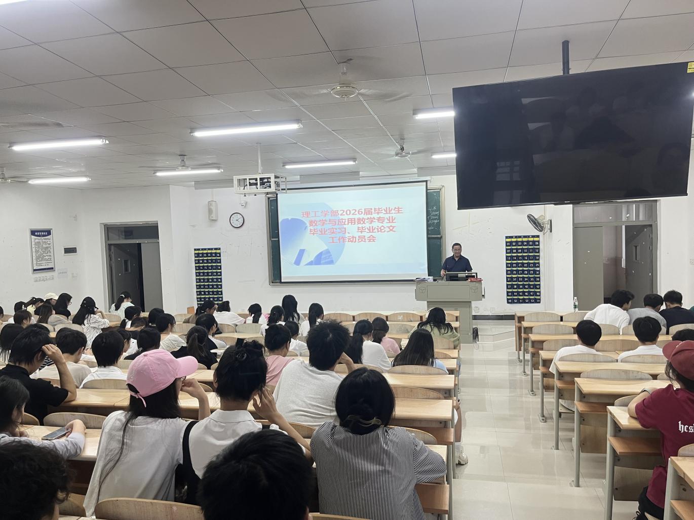 2025年6月20日下午,理工学部举办了2025年教育实习动员大会。参加会议的有:教学与科研主任潘继斌、教学办主任余璟昭、教研室主任黄佳平和辅导员马艺静,2022级数学与应用数学专业实习生参加了动员大会。
