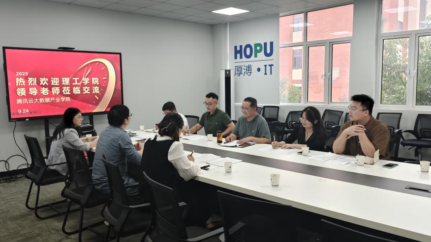 交流期间,理工学院教师团队实地参观了腾讯云产业学院的实训实验室,详细了解其在教学环境建设、课程资源整合与企业项目融合等方面的具体实践。教师代表还就课程内容更新、认证体系衔接、学生管理与团学工作等具体问题,与腾讯云大数据产业学院的相关领导和教师进行了细致交流沟通。