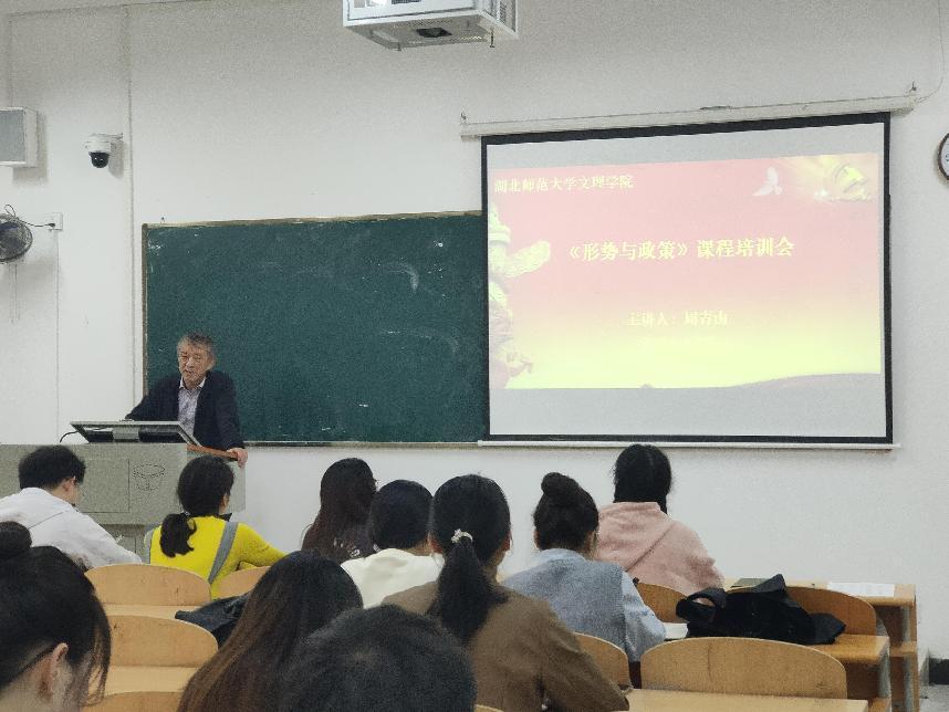 为切实提高形势与政策课教学质量,确保本学期教学工作的顺利开展,417日下午,马克思主义学部在2B103 教室召开学期形势与政策课教师培训会。此次会议由马克思主义学部主任周青山主持,学校全体形势与政策课教师参会。
