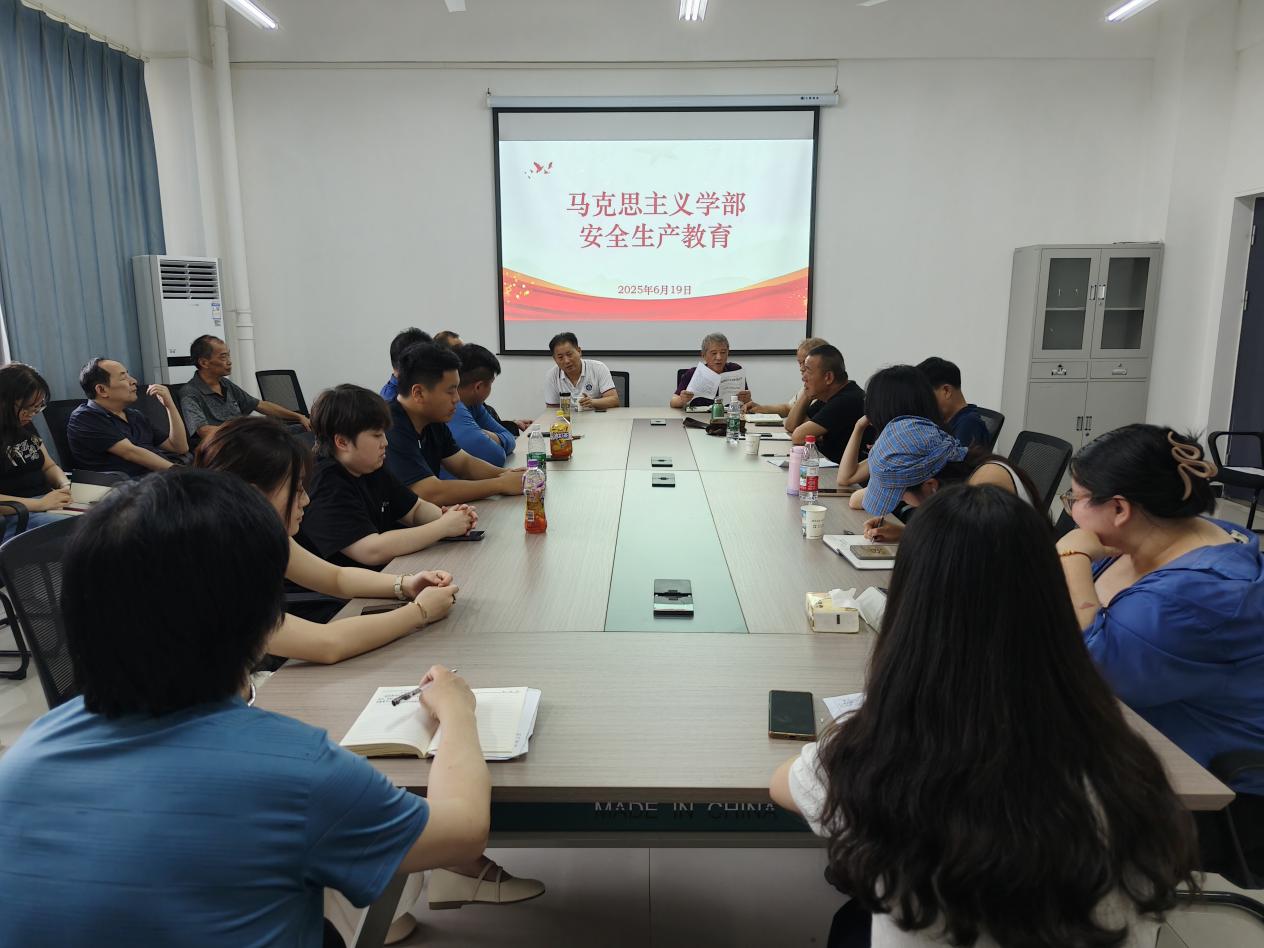 2025年6月19日中午,马克思主义学部在3号实验楼208会议室召开开展安全生产教育活动暨期末工作部署会,学部全体教职工参加,会议由学部主任周青山主持。