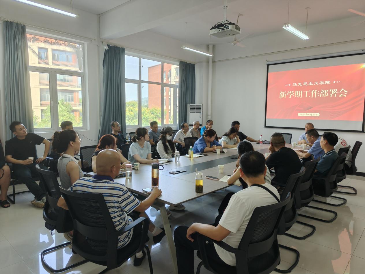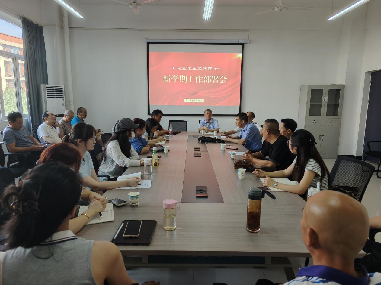 2025829午,马克思主义学3号实验楼208会议室召开新学期工作部署会,学院全体教职工参加院长周青山主持会议