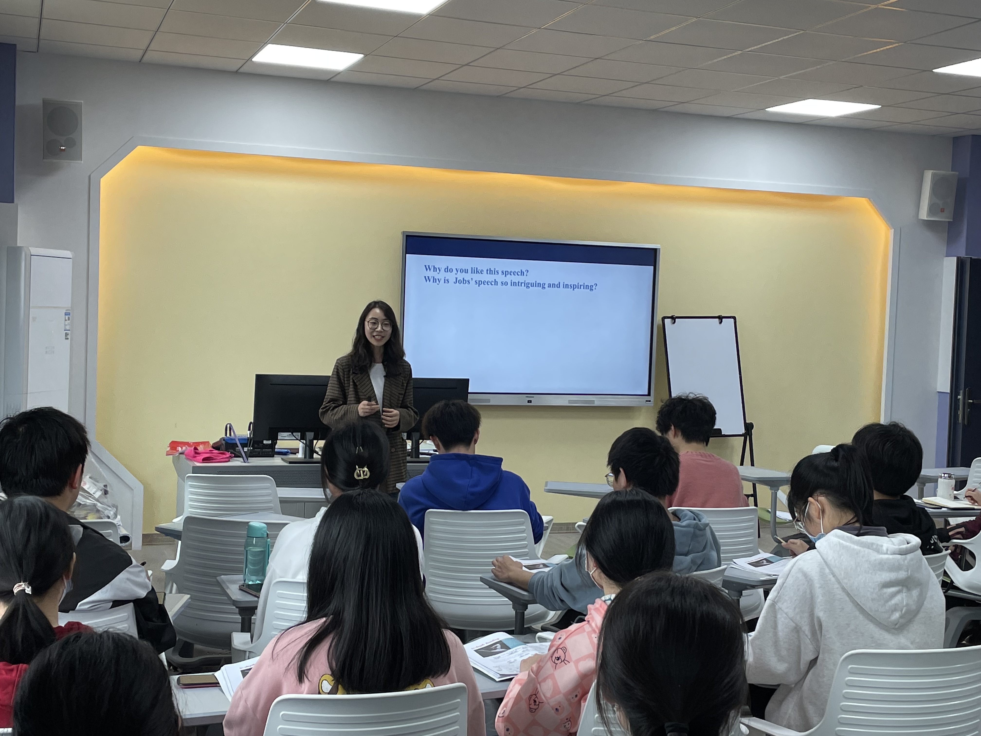 为进一步锤炼青年教师教学基本功,不断提升教学能力和水平,充分发挥教学比赛在提高教师素质中的引领示范作用,进一步激发青年教师更新教学理念,加强课程思政建设,掌握现代教学方法的热情,努力造就一支有理想信念有道德情操有扎实学识有仁爱之心的高素质、专业化的教师队伍,经积极策划,人文学部2022413日下午在3号实验楼英语情景室举行了英语专业青年教师讲课比赛